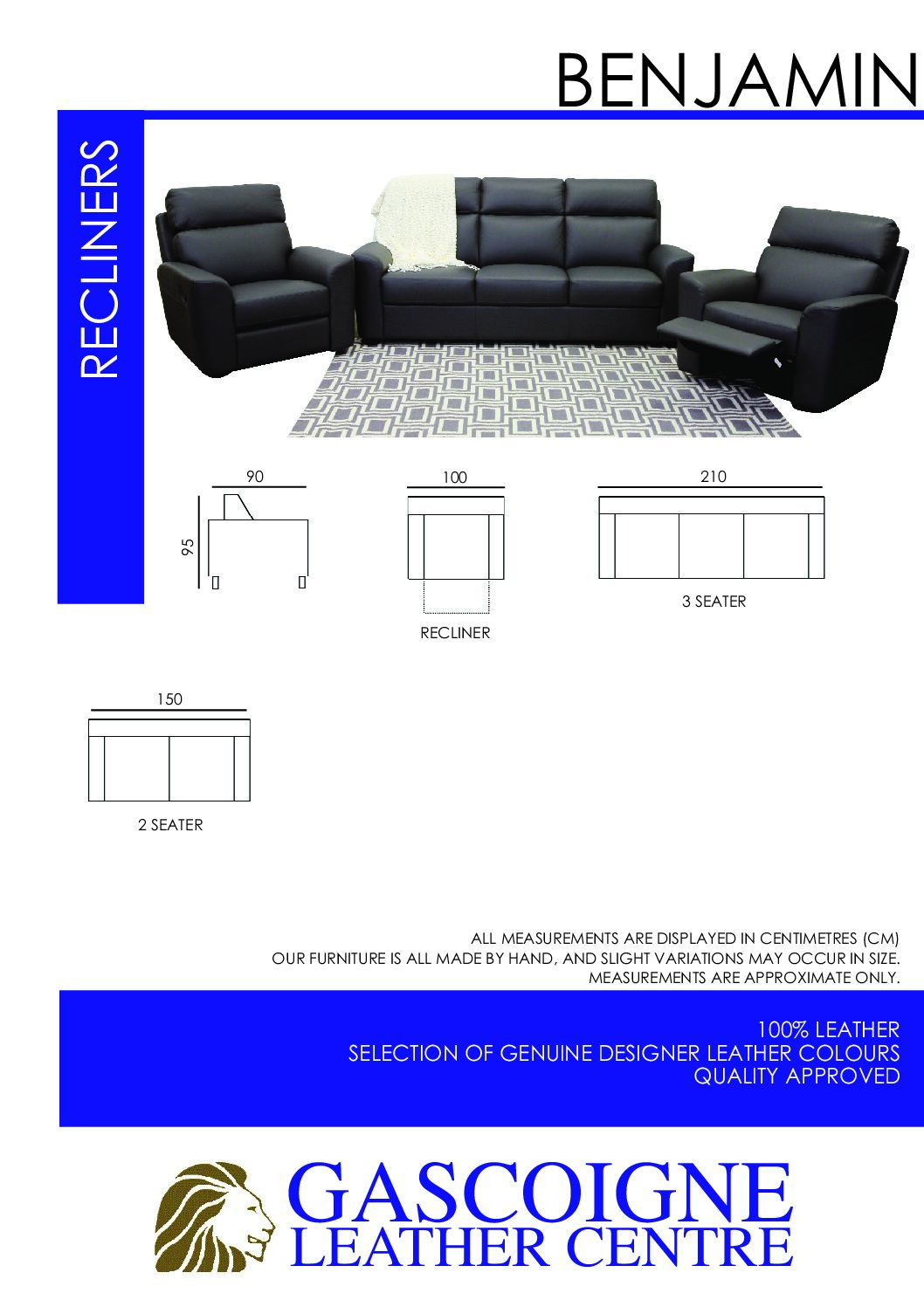 The clean lines of the Benjamin make it an excellent choice for modern and contemporary homes. The Benjamin can be custom built for you. With our huge range of colours and combinations, we can make the Benjamin to match your home and lifestyle. The Benjamin can be made as individual recliners, 2 and 3 seaters with or without motions.