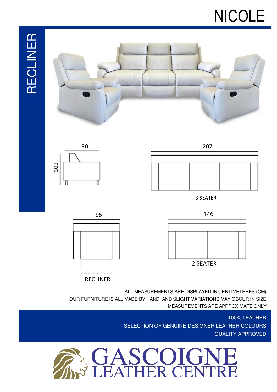 Available in a three-seater with inbuilt recliners & two single recliners.